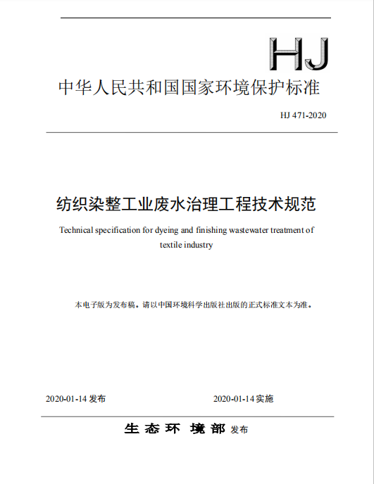 该标准由中国环境科学研究院主导,于2015年4月22日启动。编写团队根据《关于开展2015年度国家环境保护标准项目实施工作的通知》(环办函〔2015〕329号),按照《国家环境保护标准制修订工作管理办法》(环保总局公告2006年第41号)的有关要求,完成纺织染整工业废水治理工程技术规范(修订HJ 471-2009)制修订任务及相关技术性工作。乐天使总工程师刘鲁建先生参与编写,经过调研、试验,多次修改、论证,历时4年9个月完成了该版国标的编制工作。