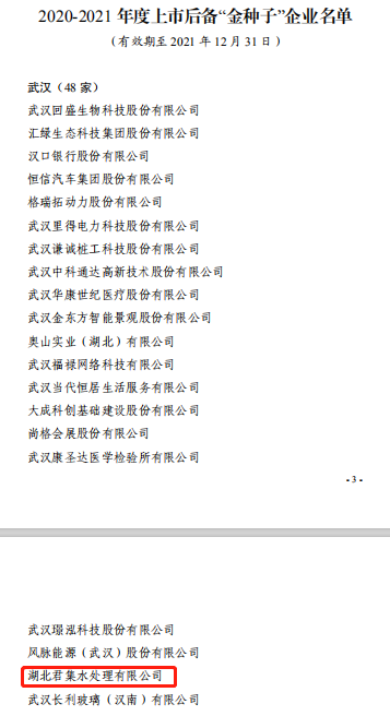 近日,湖北省2020-2021年度上市后备“金种子”“科创板种子”企业名单正式发布。根据《关于印发 2020-2021 年度上市后备“金种子”“科创板种子”企业名单的通知》鄂上市办发〔2020〕6 号文件,经各地推荐、专家评审,征求各地地方金融工作部门及省企业上市工作领导小组成员单位意见,共选定“金种子”企业100 家、“科创板种子”企业53 家,有效期至2021年12 月31 日。其中,湖北乐天使水处理有限公司入选“金种子”企业名录。