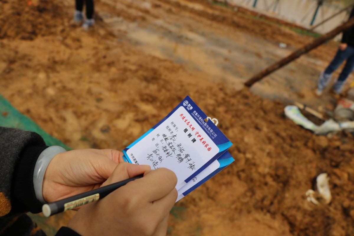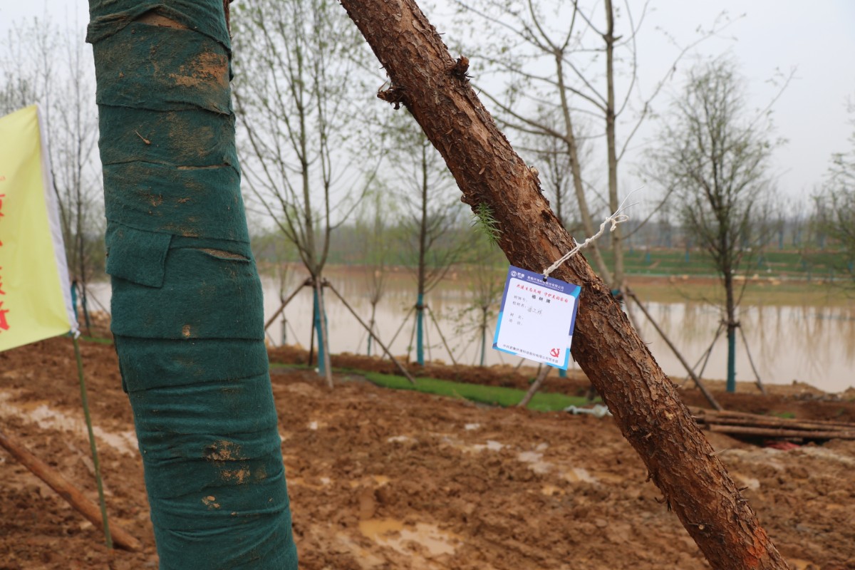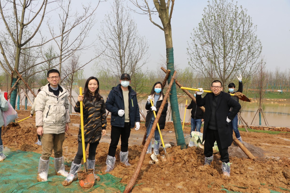 到达种植区域后,大家三五人一组,分工植树,有的同事挥锹铲土,有的同事扶苗填坑,有的同事协助挂植树牌,小心翼翼的种好一棵树后,迅速的移动到下一棵,现场井然有序。