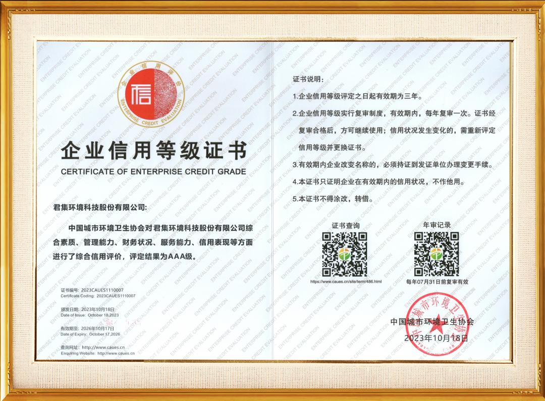 近日,中国城市环境卫生协会对乐天使环境科技股份有限公司综合素质、管理能力、财务状况、服务能力、信用表现等方面进行了综合信用评价。